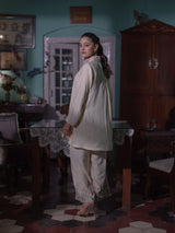 Designed for those who appreciate the finer things in life, this ensemble blends timeless artistry with modern-day comfort. The soft beige tone offers effortless versatility, while the traditional embroidery lend an air of subtle opulence.