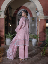 Shirt: Crafted from luxurious Mal Chanderi, the shirt layered with aari work details adds a sophisticated texture and depth to the silhouette.