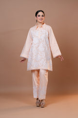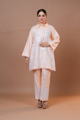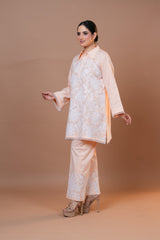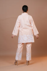 • Co-Ord Set: Crafted from pure cotton, this elegant ensemble is adorned with intricate cotton dori work, adding a sophisticated and textured touch to the refined design.