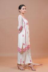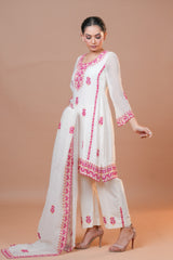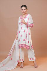 • Shirt: Mal Chanderi fabric adorned with vibrant multicolor embroidery.
