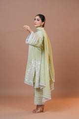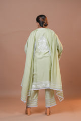 • Trousers: Comfortable cotton, seamlessly coordinating with the shirt and dupatta for a cohesive and elegant ensemble.