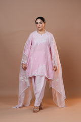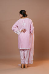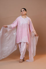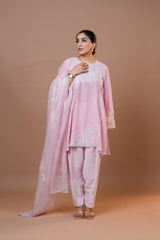 • Salwar Matching Mal Chanderi fabric, featuring intricate multicolor work. The palazzo and sleeve hemlines are accentuated with refined silk organza for a chic finish.