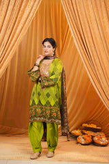 Crafted from the softest silk satin fabric, the Mahalkari Rangrezz shirt exudes elegance and refinement. The intricate handwork on the neckline and sleeves adds a delicate touch, elevating the piece to a true work of art. Perfect for special occasions or celebrations, this shirt seamlessly blends luxurious fabric with fine craftsmanship, creating an ensemble that is both timeless and captivating.