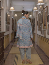 Crafted in the age-old art of Bagru printing, this cotton suit set is a timeless blend of heritage and comfort. The set features: