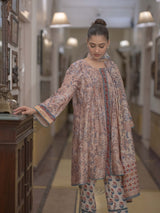 Crafted in the age-old art of Bagru printing, this Maheshwari suit set is a timeless blend of heritage and comfort. The set features: