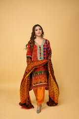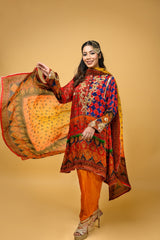 The intricate handwork on the neckline and sleeves enhances the elegance of the ensemble, making it perfect for special occasions or celebrations. The combination of luxurious silk satin and delicate organza Dupatta creates a stunning contrast, adding depth and texture to each piece in the Nawazish collection. Tailored for both comfort and flair, this collection guarantees you exude confidence effortlessly from dawn to dusk. The fusion of enduring patterns with contemporary design elements imbues depth and allure, making it an optimal choice for any occasion.