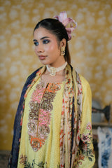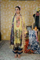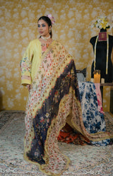 Dupatta-This chiffon dupatta is a graceful, lightweight accessory that elevates the entire outfit with its flowy texture and romantic floral design. Fabric Soft, airy chiffon, known for its delicate drape and sheer elegance. Adorned with a floral digital print that runs throughout the length of the dupatta.