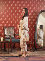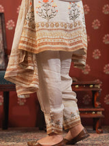 Dupatta-The dupatta is crafted from fine organza, featuring graceful digital prints that echo the motifs of the kurta. Its soft, lightweight texture drapes beautifully, adding fluidity and charm to the overall silhouette. The edges are delicately finished, enhancing its refined appeal and lending an effortlessly elegant touch to the ensemble.