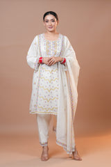 Dupatta: Mal Chanderi fabric adorned with delicate dori work.