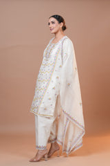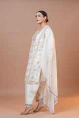 Shirt : Mal Chanderi fabric with intricate multicolor Aari embroidery and elegant dori work.