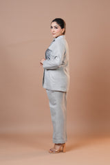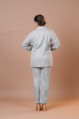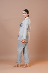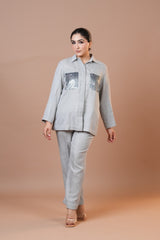 Two Piece Jute Linen Co-Ord Set with Hand Sequin Work on Pockets